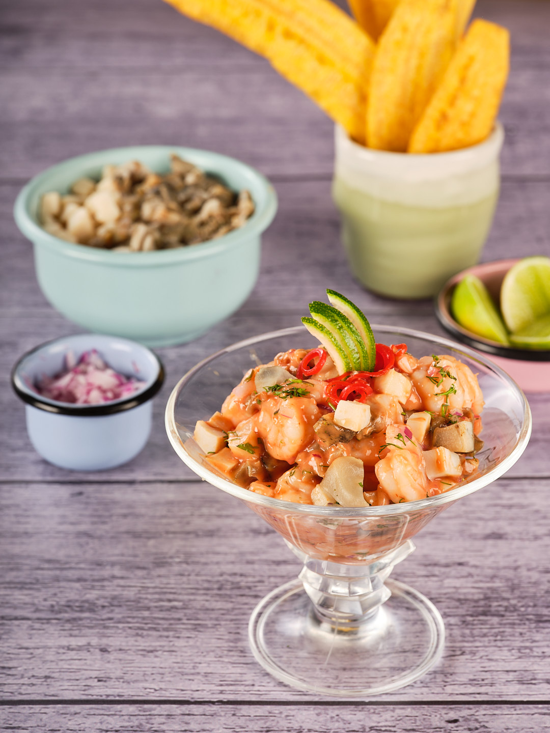 Ceviche Bomba | COD: 57 Cantidad: 1 - Unidad Contenido: Camarones, almeja criolla y caracol copey en salsa ceviche de la costa atlántica colombiana. Acompañado de galletas de soda.