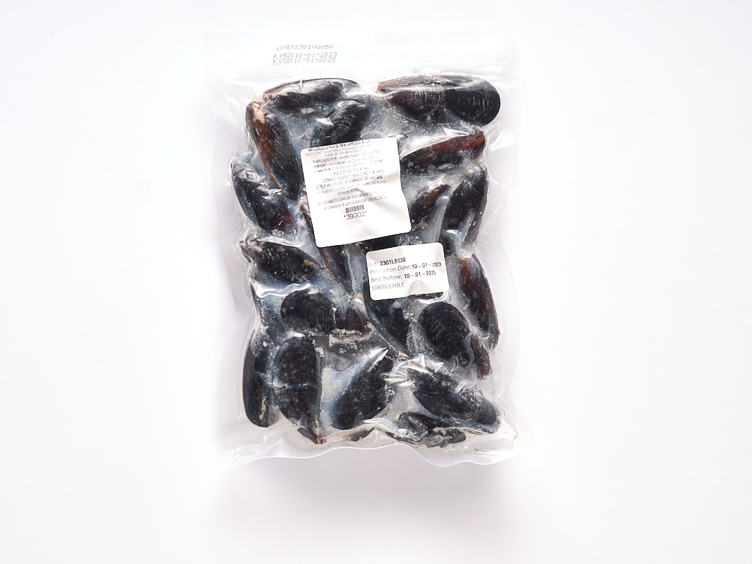 Estos mejillones negros son conocidos por su sabor robusto y su carne tierna. Son una excelente fuente de proteínas, hierro y otros minerales esenciales. Vienen congelados y empacados al vacío para mantener su frescura y calidad.